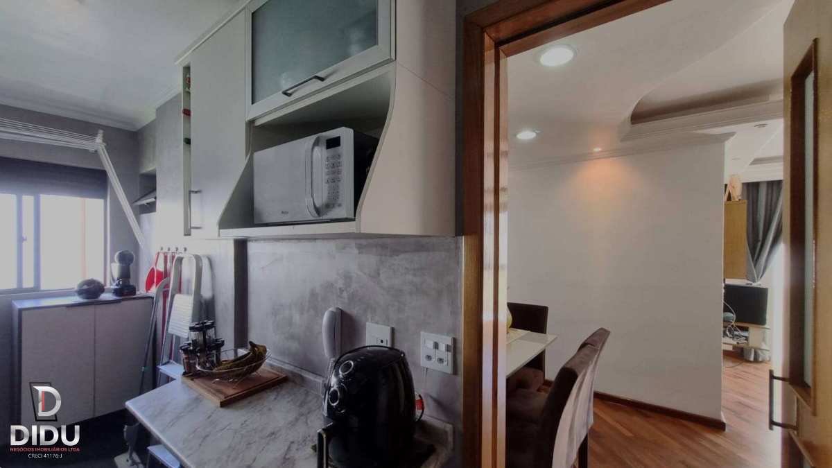 Além disso, o apartamento possui 74,76 m², com 1 vaga de garagem, sala para 2 ambientes, sacada com envidraçamento e cortina de rolo, gesso em todo o apartamento, pintura recente, armários planejados na cozinha, área de serviço, banheiro e dormitórios, piso de madeira, fechadura eletrônica na porta de entrada, entre outros diferenciais.
